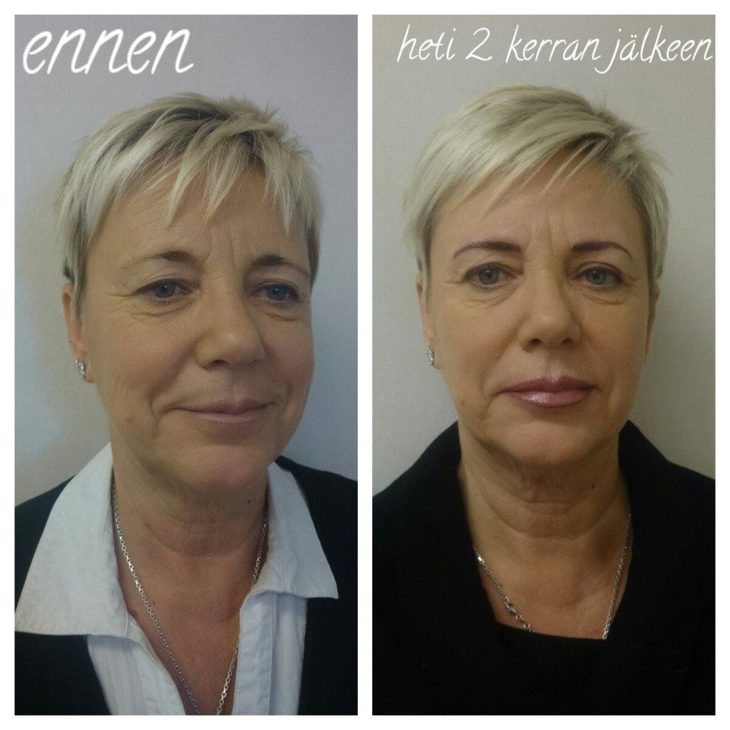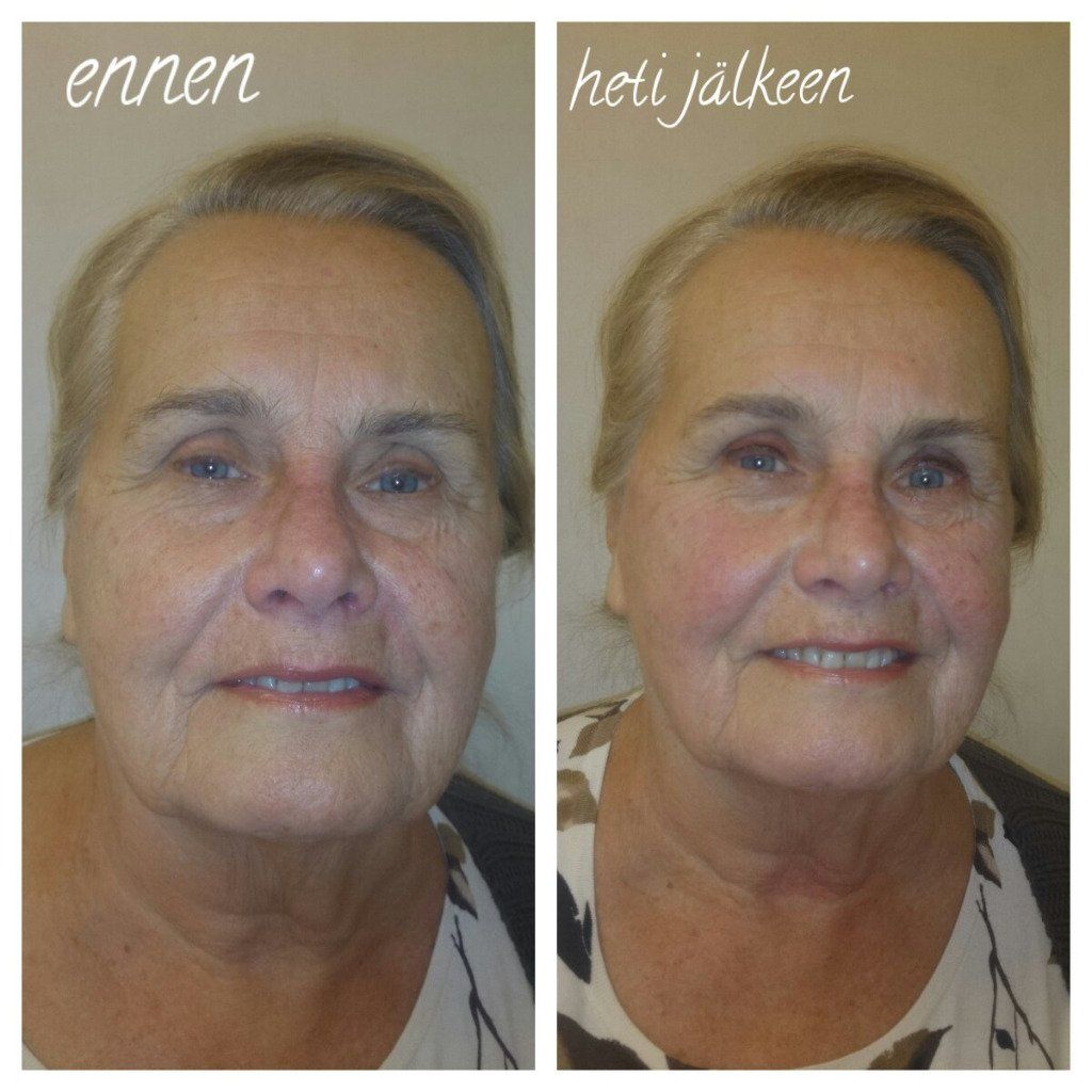 Asiakkaan toiveen ja kokonaisuuden mukaan korostamme voimakkaalla tai luonnollisella sävyllä ja saamme tervettä hohdetta koko kasvoihin. Veitsetön kasvojen kohotus. Huolitellut kasvot 24/7 jumpassa hikoilemassa, mökillä puutöissä, illan karkeloissa jne. Arkena aamut kevenevät ja meikkaamisen vaiva vähentyy!